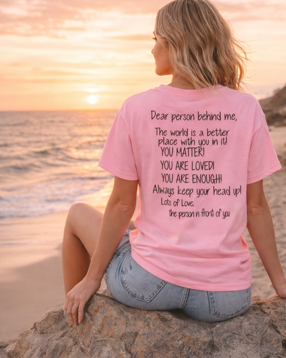Customers share stories of people stopping to read the back of the shirt, smiling, saying thank you, or simply walking away feeling a little lighter. These are small interactions but they matter more than we realize.